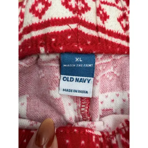 Festive Old Navy Christmas jogger pants featuring a classic red-and-white Fair Isle pattern with sno... Show more