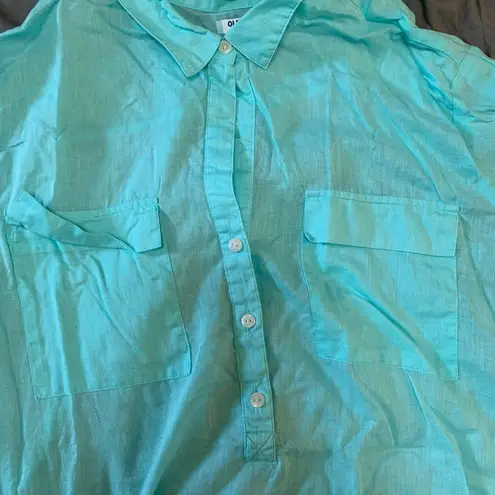 This shirt has been worn but is in good condition. It is wrinkly because it has been folded in the c... Show more