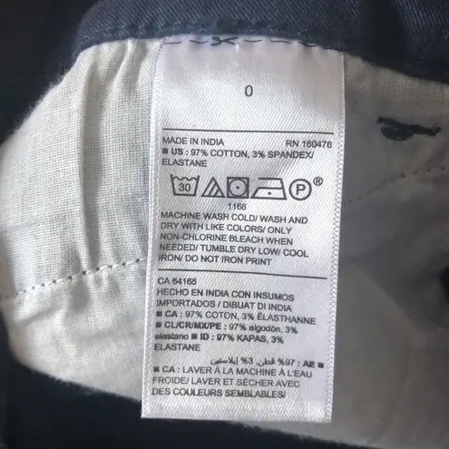 New with tag Size: 0 Color: Navy Mid rise Boot-cut leg Regular inseam 32” Front slant pockets, deco... Show more