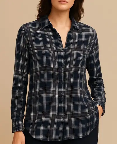 Old Navy Navy Blue Plaid Button Down Shirt Size Large Classic and lightweight Old Navy plaid button... Show more