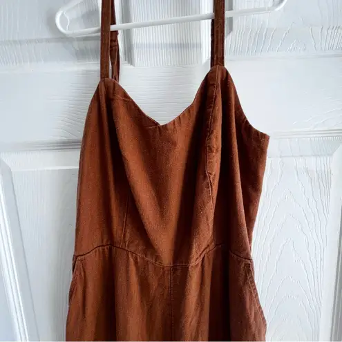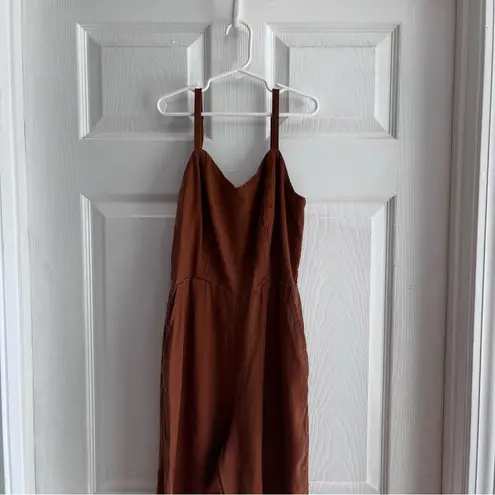 Chic rust jumpsuit with sleeveless design. Ideal for everyday wear. Very good condition does have s... Show more