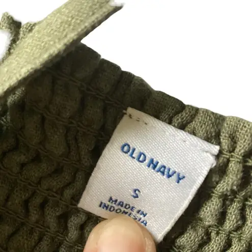 Olive green linen blend jumpsuit by Old Navy in good preowned condition. No flaws. Very light signs... Show more