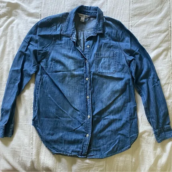 Size M Message me with questions! #oldnavy #buttonup #shirt #top #blue