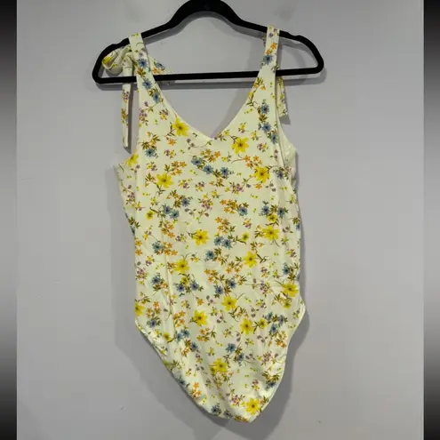 Yellow and blue ribbed old navy body suit with ties on the shoulder worn once size large