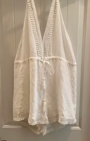 Olivaceous White halter top romper Cute details Spots shown in pics (most likely from spray tan lo... Show more