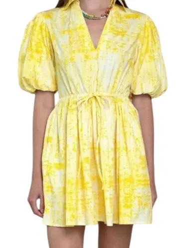 Olivia James The Label Daphne Dress Scatter Golden Floral Print Puff Tie Waist Size S Excellent pre owned condition Look no further for your perfect mini dress. Meet Olivia James' newest and chic style, The Daphne. She features a charming fit-and-flare silhouette, a collared V-neckline, a flattering tie waist, and a playful skirt. The darling, mini length of the Daphne makes her effortless to style with your favorite sneaker, sandal, or heel for any Spring or Summer day. - Fits true to size - 100% Cotton - Machine wash, line dry, cool iron if needed, can also be dry cleaned Large puff sleeves with elastic cuff Drawstring waist Unlined Collar Bust across front seam to seam 20” Shoulder to hem 32” SA997 Cotton, mini, yellow, summer, drawstring waist, preppy Olivia James The Label Daphne Dress Scatter Golden Floral Print Puff Sleeves