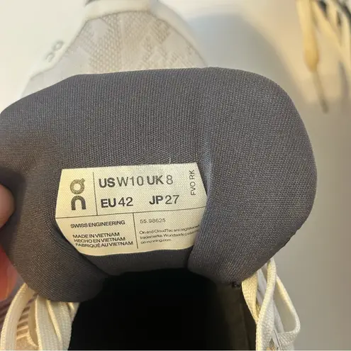Stylish On Running sneakers. On Cloud Cloud Runners. Cream upper with gray accents. Comfortable and modern design. Purchased from another posher but ended up getting a new pair and never wore these. I haven’t worn them at all since purchased.