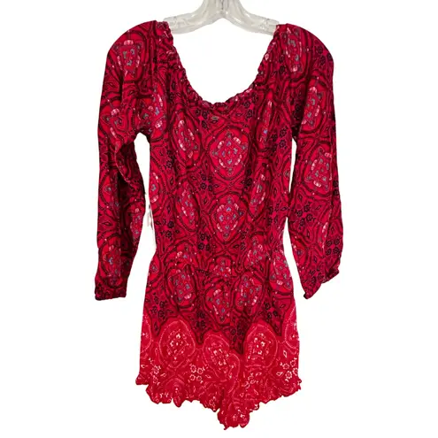 O'Neill Nashville Off-the-Shoulder Romper Women's Medium Red Dainty Festival Boho Western. Bring alo... Show more