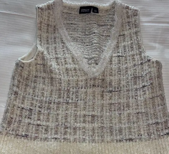 Cozy textured sweater by ONLY. Features cream and brown tones. Perfect for casual wear. Very Chic and Stylish Size Medium Cropped Top Awesome addition to any wardrobe ❤️❤️❤️❤️