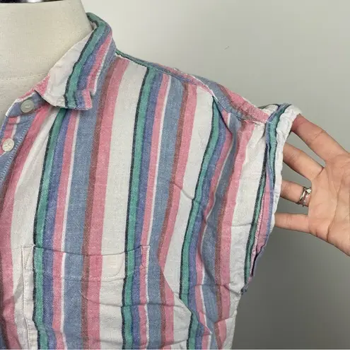 Orvis Linen Blend Pink Blue Green White Stripe Button Down Short Sleeve Top Size L - $14 - From Melinda