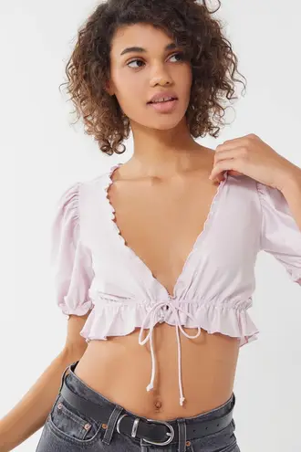 - pinkish lavender smooth front tie cropped top - true to size - never worn (i ordered wrong size)... Show more