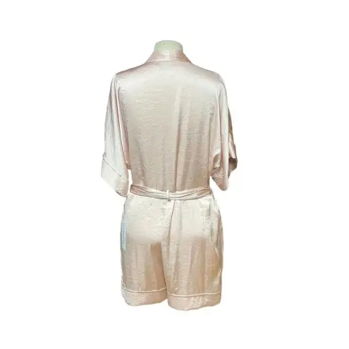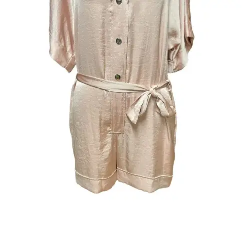 Brand new with tags Overlover Cherokee Romper in Pink Powder Short light pink playsuit Short sleeves Button front Tie at the waist 100% viscose Armpit to armpit is approx 25" Waist is approx 18" Hip is approx 20" Inseam is approx 4.5" Length is approx 32"