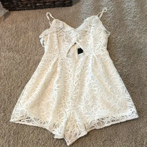 Cream lace spaghetti strap romper with cut out front never worn Size M - $41 - From Ashley