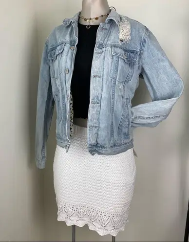 Pacsun Distressed denim jean jacket w/ Cheetah leopard lining Light washed denim, ripped effect jack... Show more
