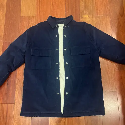 Navy blue corduroy sherpa jacket Size S 27” length 22” pit to pit *last picture represents the t... Show more