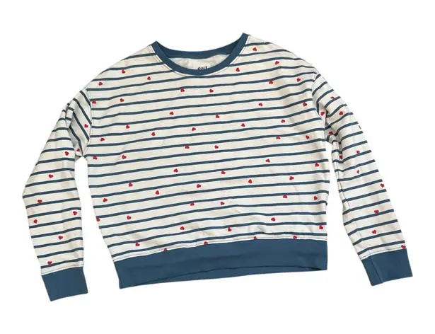 Pact Organic Cotton Pullover Sweatshirt | Blue Stripe Scattered Heart | Medium - $32 - From Kelsey