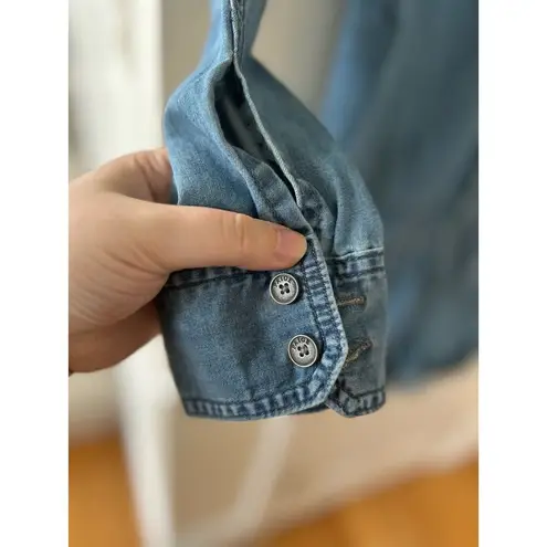 Excellent condition. Chambray lightweight denim. Button front, shorts with roll hem, long sleeves. B... Show more