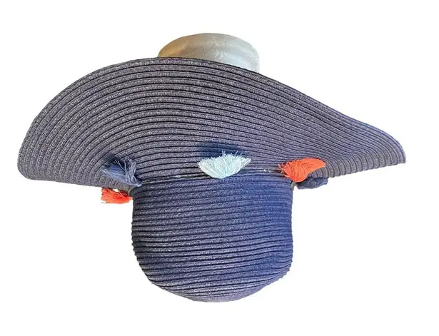 Panama Jack Women's Blue Straw Floppy‎ Beach Pool Hat Tassels Packable One Size - $12 - From Beth