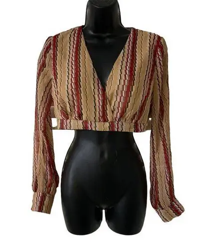 Papaya crop top M Red and tan Stripe 100% polyester Features: • Deep V • Crop top • Horizontal s... Show more
