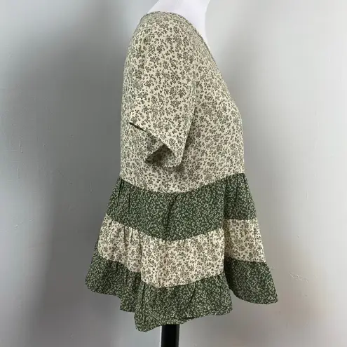 NEW WITH TAGS Paper Crane Blouse Peasant Tiered Floral Dusty Green, Earth Tones Boho Pullover... Show more