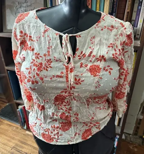 Papermoon Stitchfix boho, keyhole neck, red and white, peony print, long sleeve blouse. Approximatel... Show more