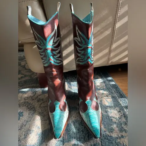 Para Raio Western Barn Hard To Find Brown,Teal Snake Skin Cowboy Boots, Size 7 Brown - $145 - From Maria