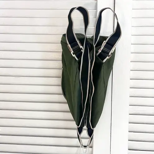 Paravel folding packable backpack in forest green. Lightweight nylon with black & gray adjustable st... Show more
