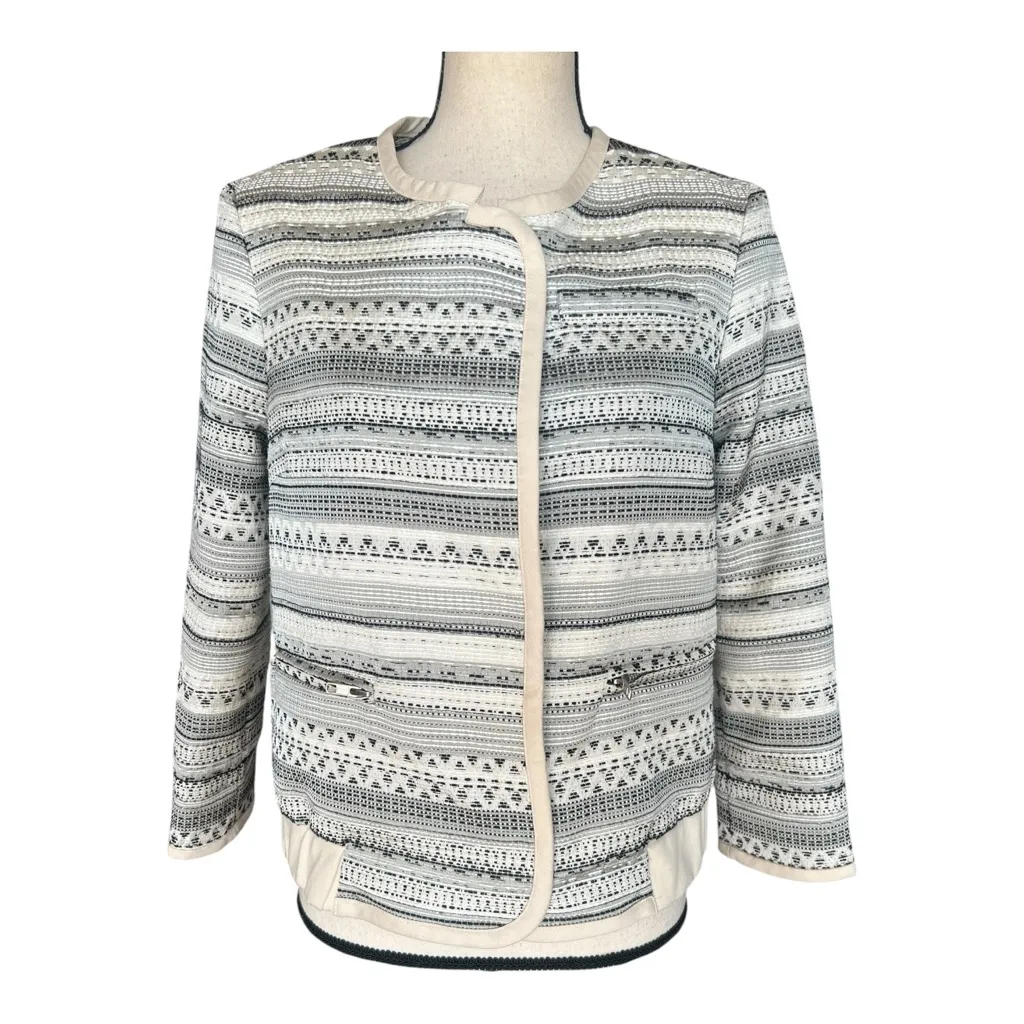 Metallic thread detail snap and zipper closure . Perfect for layering. size M in excellent conditi... Show more