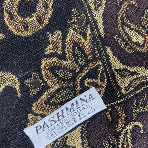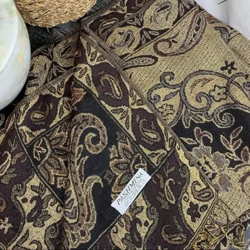 Pashmina Brown Tan & Black Brocade Print Rectangular Scarve - $34 - From Designer