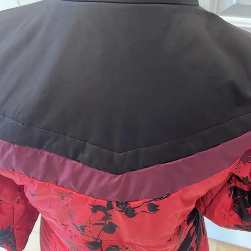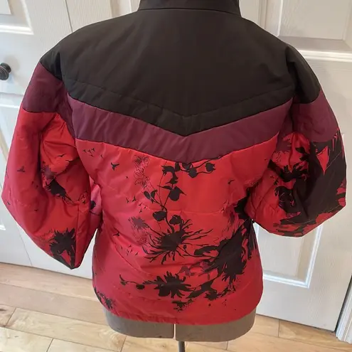 EUC-Patagonia red, maroon and black insulated flowered full zip puffer jacket with side zip pockets... Show more