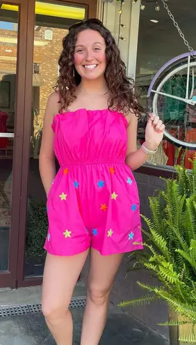 This NWT neon sequin star romper is by the brand Peach Love in the size M and the color Barbie pink.... Show more