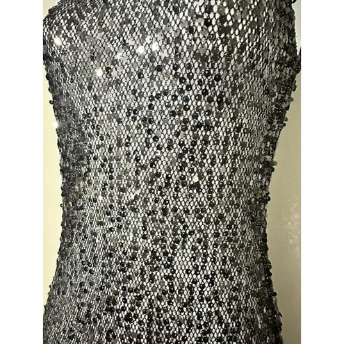Pit to pit 18 unstretched Length 59 The Electric Chaos Maxi Dress in Midnight Stars features a stunning silhouette that effortlessly combines elegance and bold style. Its flowing fabric and unique star pattern create an eye-catching focal point for any evening event. Perfect for making a statement, this dress offers both comfort and sophistication, ideal for pairing with your favorite heels and accessories. Elevate your wardrobe with a piece that exudes confidence and charm. PepperMayo • Sequin Maxi Dress • Black Glitter Dress • Sheer Mesh Dress • Low Back Gown Clubwear • Festival Outfit • Rave Wear • Y2K • Euphoria Style • Glamorous • Party Dress • Vacation Dress • Resort Wear • Beach Cover-Up • Overlay Dress • See-Through • Bodycon • Slip Dress Sequined • Beaded • Iridescent • Sparkly • Glitter • Fishnet (for the mesh texture) • Sleeveless • Scoop Neck • Floor Length