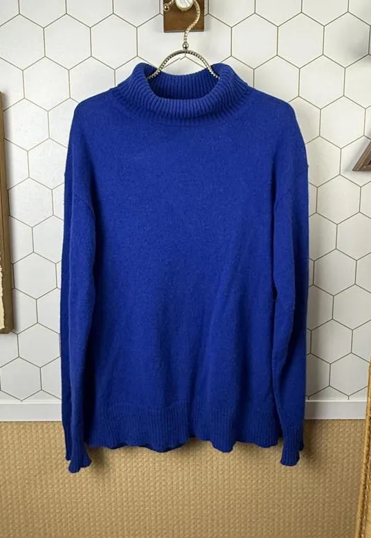 P2P: Approximately 24 inches Length: Approximately 29 inches Size: Small Condition: Lightly worn with no visible signs of wear or damage. This royal alpaca turtleneck sweater features a vibrant blue color and a comfortable fit. It is made from a soft knit fabric that provides warmth and style for cooler weather. The ribbed collar, cuffs, and hem add a classic touch to this versatile sweater, suitable for casual or semi-formal occasions.