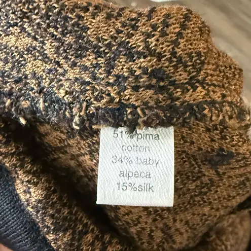Excellent preowned condition womens size medium. Black and brown printed knee length midi skirt. Pull on style. Pima 51% pima cotton, 34% baby alpaca, 15% silk Damask paisley print.