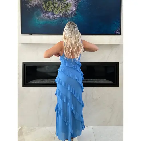 Details: – Hidden side-zip closure – V-neck – Adjustable straps – Lined – True to size Composition + Care: – 100% polyester – Hand wash, dry flat Condition: – Excellent condition Size and Color: – Size: Small – Color: Blue SKU # 11,813 Tags: Influencer Statement Piece, bridesmaids, black tie, gala, formal wear, prom, homecoming, pageant, wedding guest, bridal, wedding, bridal shower, mother of the bride, mother of the groom, rehearsal dinner, bachelorette, pageant, prom, homecoming, wedding, engagement photos, special occasion, little black dress, gala, Graduation, holiday parties, pageant, Quinceañera, formal, black tie, cocktail, Maid of honor, Special occasion, Designer Event, Dinner gown, Photo shoot, Formal event, Celebrity Red Carpet Luxe Luxury, Holiday, Vacation Resort wear, Beach dress, Spring, Summer, Fall, Winter