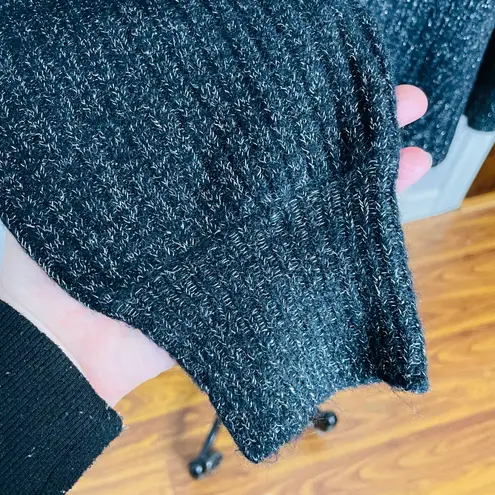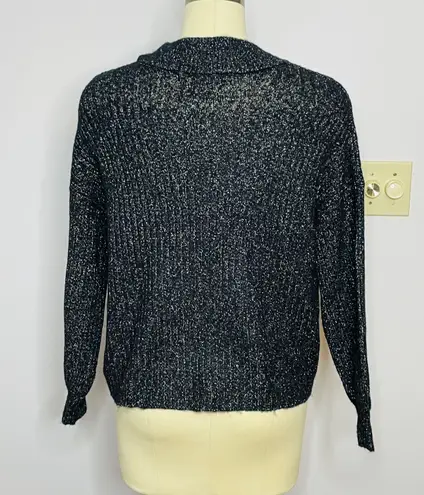 How pretty is this sweater? Mock turtleneck design. Black knit material with silver metallic thread... Show more