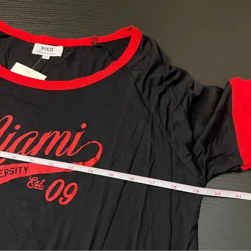Piko women’s black and red University of Miami bamboo-blend 3/4 sleeves top. Size medium. See phot... Show more