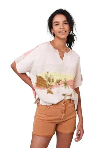 Pilcro Anthropologie Desert Intarsia Sweater Tee Womens Size Medium Cotton Pink - $52 - From Jessica