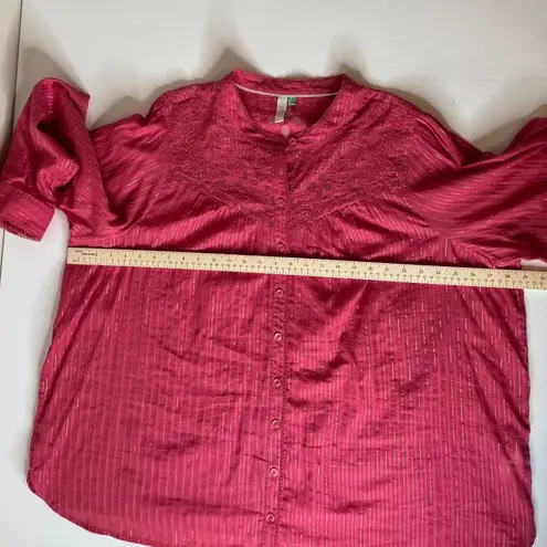 Great Pre-Owned Condition (see pics for details) Flaws: Has a snag in fabric. A charming and elegant blouse, perfect for adding a touch of sophistication to your wardrobe. This long-sleeved top features delicate embroidery around the neckline, complemented by subtle metallic stripes throughout the fabric. The button-down design and relaxed fit offer both comfort and style. Ideal for a casual brunch, a day at the office, or a relaxed evening gathering. Color: Pink Type: Blouse Department: Women Material: Cotton Sleeve Length: Long Sleeve Sleeve Type: Classic/Fitted Sleeve Pattern: Striped Accents: Embroidered, Button Features: Metallic Stripe, Button-Down, Relaxed Fit, Embroidered Neckline Fit: Relaxed Keywords: Pilcro, blouse, top, embroidered, metallic stripe, long sleeve, pink blouse, plus size, womens top, button down, casual blouse, dressy blouse, size 26W, cotton blouse Measurements: included in photos. Please compare the measurements to something you already own for a great fit! Fast shipping: Shipped out next business day! Please let us know if you have any questions!