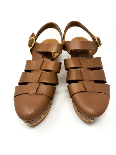 pilcro by Anthropologie fisherman clog wooden heels Size: 8 Color: honey (tan, camel leather) Wood... Show more