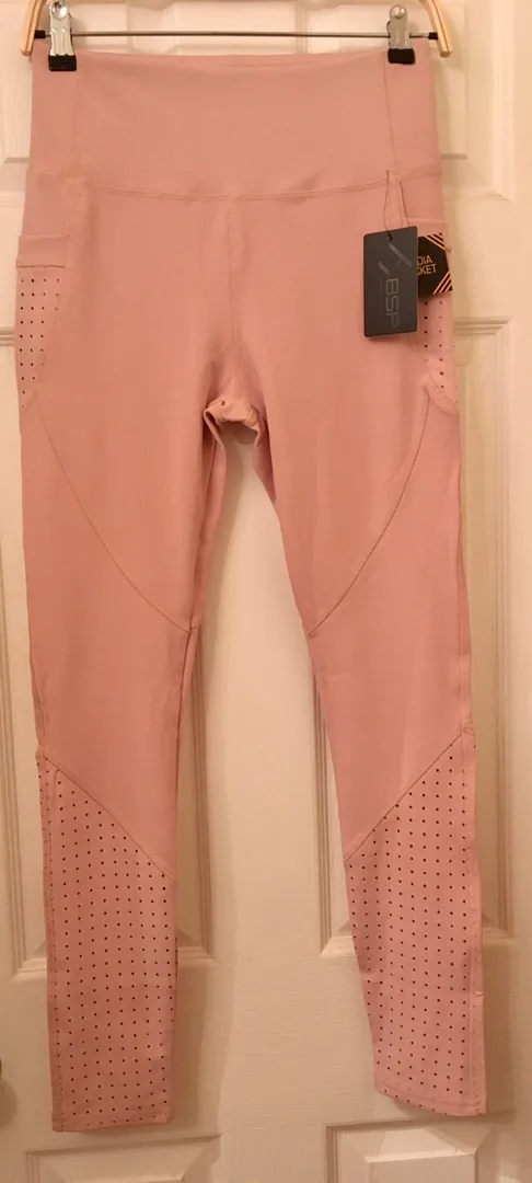 Women’s Athletic Performance Leggings, Pink, by Better Sports Performance. Size Medium. Spandex Compression Fit, Moisture Wicking Fabric. Polyester/Spandex. Measurements: Waist 26”, Length 37.5”. Brand new with tags.