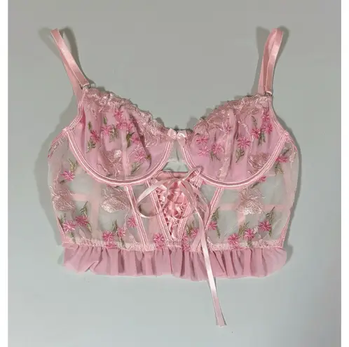 Pink Pastel Floral Mesh Corset Bustier Bra Bralette Lingerie Crop Top Size S 🌸✨ - $45 (30% Off Retail) - From faeriekiss