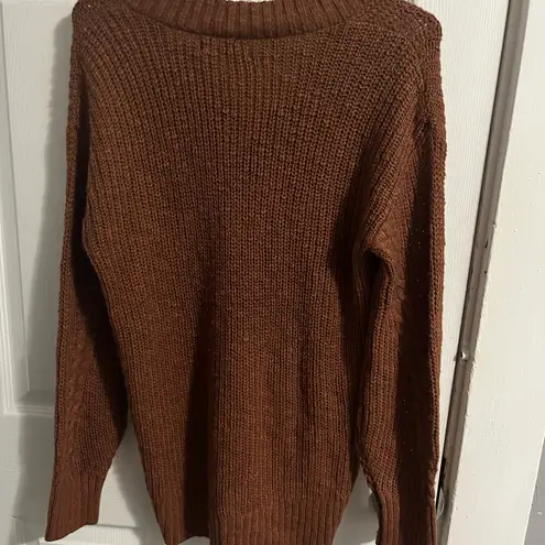 Cozy V-neck sweater by Pink Rose. Features a chunky knit design. Ideal for layering.