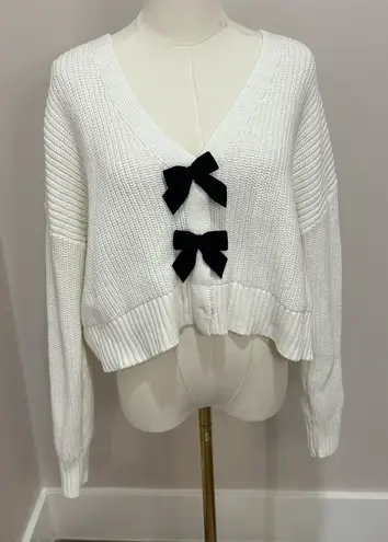 Pink Rose White‎ bow Cardigan sweater Size L White - $23 - From Metsky