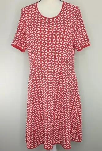Pink Tartan Womens Heavy Knit Fit and Flare Midi Dress Red Patterned XL Pre-Loved -Short Sleeve... Show more