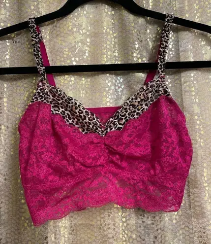 PINK Magenta Cheetah Lace Unlined Bralette, Large PINK magenta/cheetah lace bralette, like new! Su... Show more
