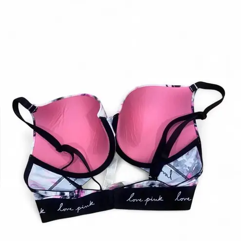 Victoria's Secret PINK white, pink and black tie dye print wear everywhere push up bra size 36c Ta... Show more