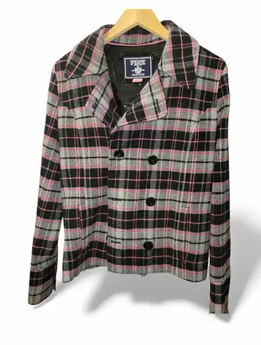 PINK Victoria’s Secret Wool Blend Double Breasted Pea Coat Plaid- Pink SZ: Medium. Good pre-owned c... Show more