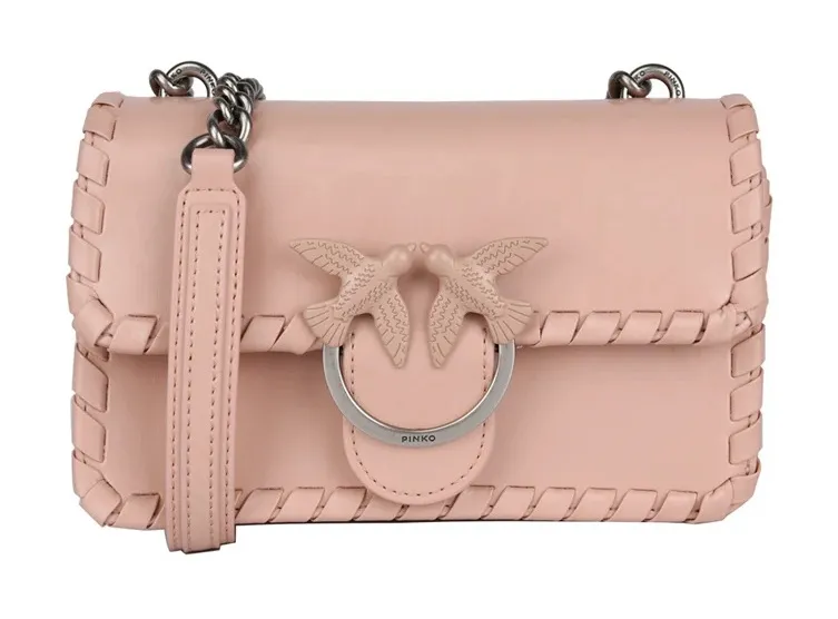 Chic Pinko crossbody bag in blush. Features signature bird embellishment and chain strap. Perfect fo... Show more