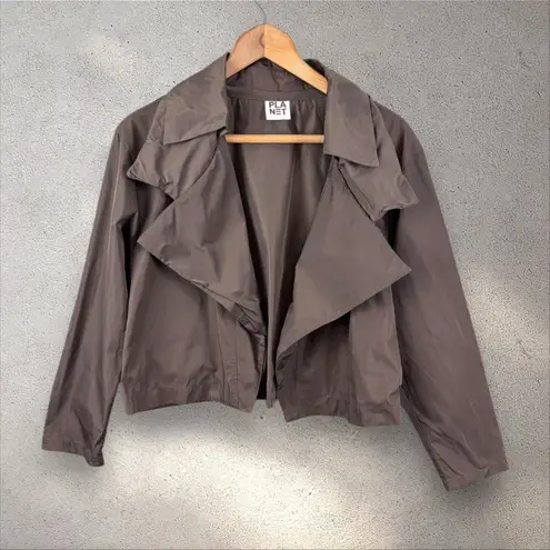 Planet by Lauren G Nylon Triple Collar Jacket Blazer One Size Lagenlook Boxy Brown - $125 - From Patchworked
